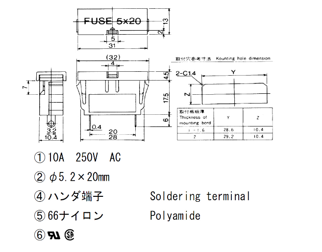 5*20 PCB板安裝保險絲盒 MF-564 10A250V