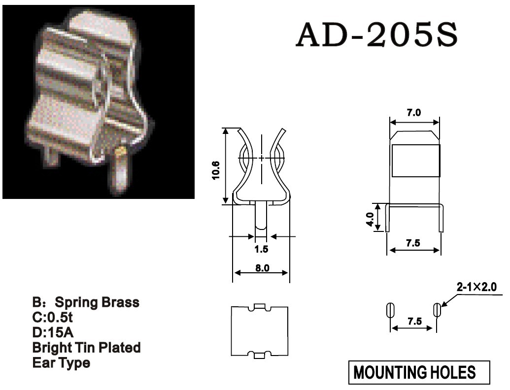 6*30 PCB板安裝保險絲夾 AD-205S ROHS