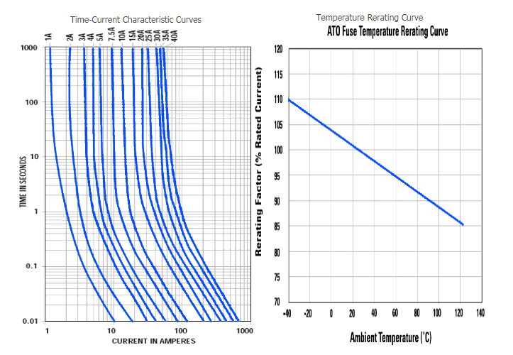Interrupting Rating: 1000A @ 63 VDC Voltage Rating: 63 VDC Operating Temperature Range: -40?C to +125?C Terminals: Ag plated zinc alloy Housing Materials: PA66 Complies with: Meets SAE J2077 ISO 8820 UL 248 Special Purpose Fuses Time-Current Characteristics