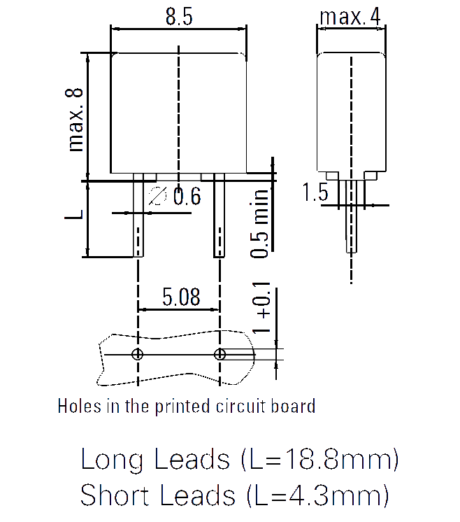 260oC, 10 sec. (IEC 60068-2-20) 350oC, ≤ 3 sec. (Soldering iron)