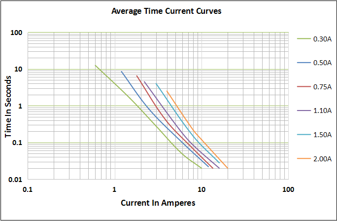 Ri min/max = Minimum/Maximum device resistance prior to tripping at 25°C.