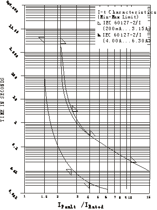 4.外觀及形狀 APPEARANCES AND CONFIGURATION 4-1外觀:不應(yīng)有破碎、明顯的汙斑 Appearances:There shall no fragmentation and of remarkable blotch. 4-2形狀:帶腳的保險絲 Configuration:Axial Leaded Fuse. 5.物理特性 PHYSICAL CHARACTERISTIC 5-1 拉力測試 Tensile test 沿端子的軸向施加10N的拉力,持續(xù)1分鐘。 Keep pulling the cap of the fuse with 10N at axial direction for 1 min. 6.電氣特性 ELECTRICAL CHARACTERISTICS 熔斷/電流特性: Pre-Arcing Time/Current Characteristic a、Breaking capacity(分?jǐn)嗄芰Γ?Time Lag and Fast Acting)